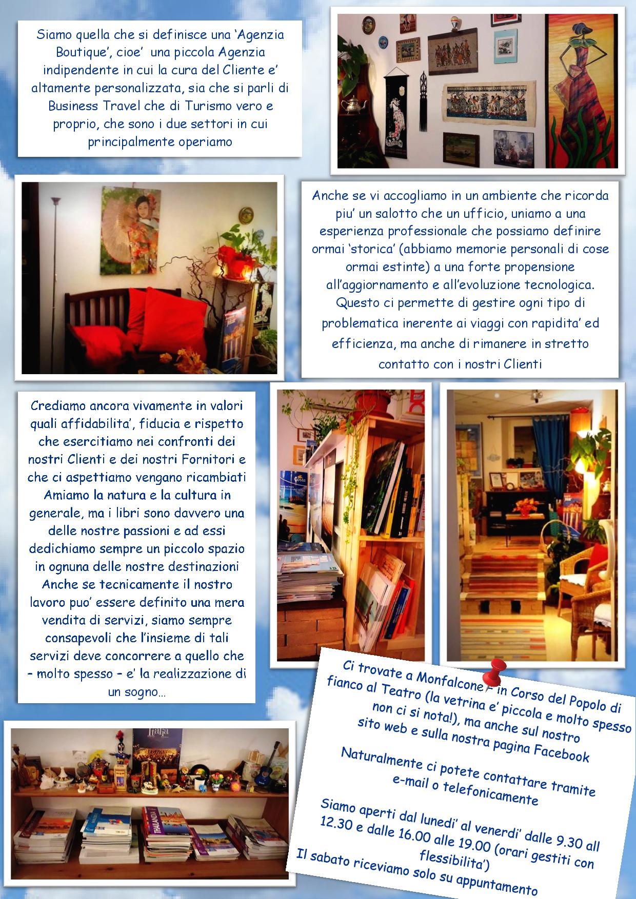 i nostri contatti ABOVE ALL TRAVEL di Nicoletta Zamberlan Corso del Popolo 16 - 34074 MONFALCONE (GO) Tel 0481/791622 - Cell. per emergenze 349/4152256 e-mail info@abovealltravel.it